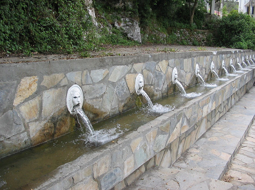 The main square of the village is lovely and has a fine stone fountain constituted by a row of stone carved lion heads from where crystal-clear water flows.